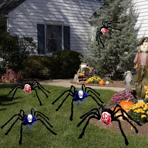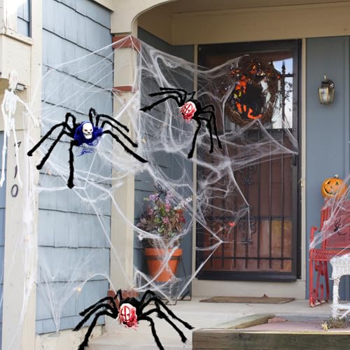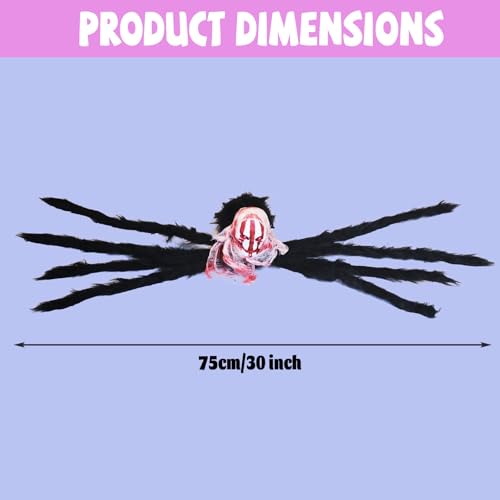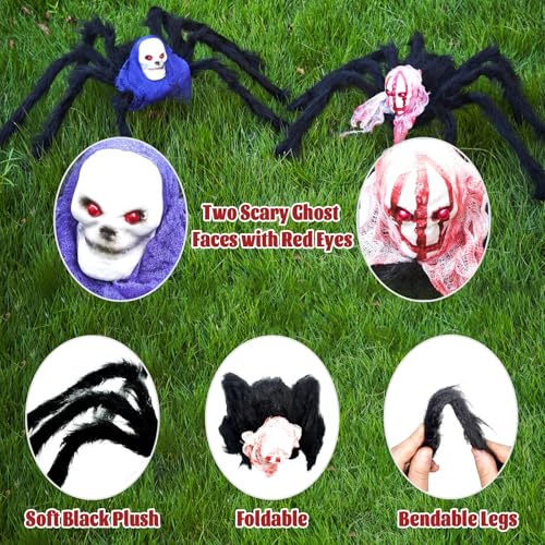 Specification: 2 Pack 30 Inch Halloween Outdoor Decorations Hairy Black Spider with Ghost Face, Scary Spiders Haunted House Props for Yard Lawn Patio Halloween Decorations