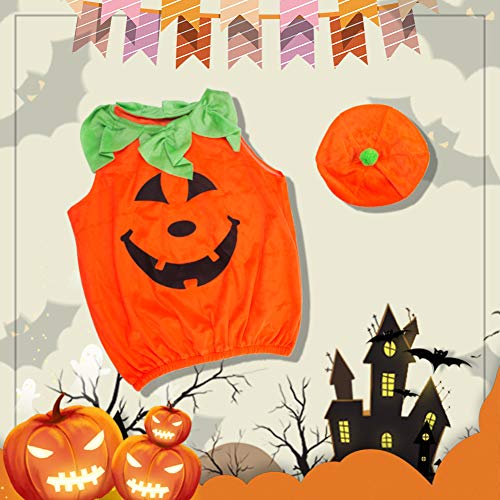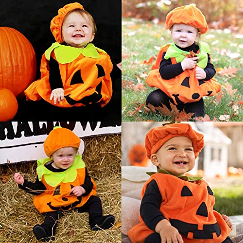 Specification: BigOtters Halloween Pumpkin Costume Set, Infant Toddler Halloween Cosplay Cutie Plush Costume Party Favor with Baby Hat, Orange