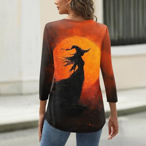 Specification: Halloween Henley Shirts for Women 3/4 Sleeve Witch Graphic Tees Vintage Festival Tops V Neck Sweatshirts Funny Costumes