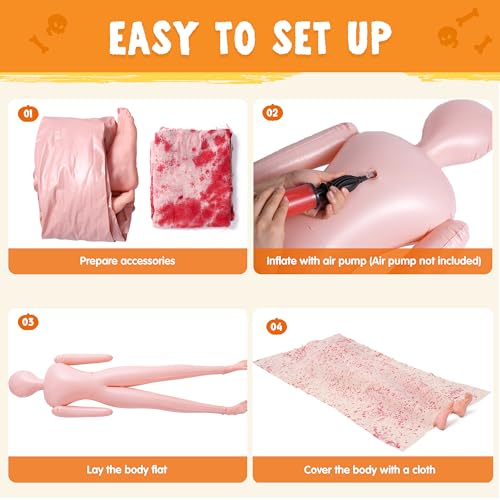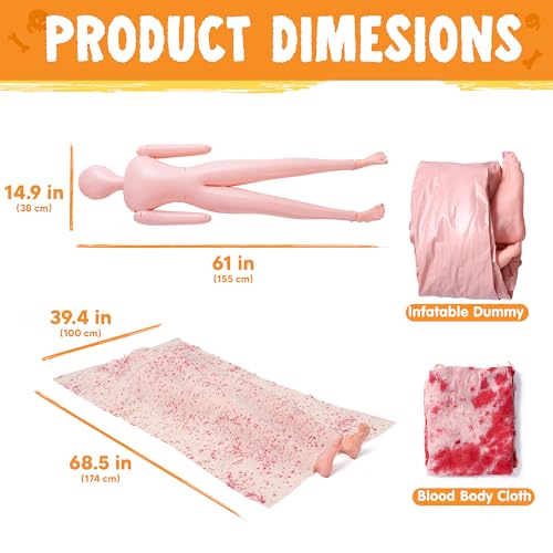 Specification: JOYIN 5 Ft Halloween Scary Decorations, Inflatable Body Covered Show feet, Outdoor Haunted House Corpse Decor Prop for Crime Scene Party Lawn Yard