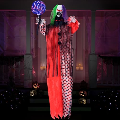 Terrifying & Hilarious Design: when you pass by this clown within 1m/3.28ft, it is activation for seamless scares. Features waving arms, glowing red LED eyes, and a screaming animated Halloween decoration sound effect.A mix of spooky and playful for Halloween indoor outdoor scary decorations.