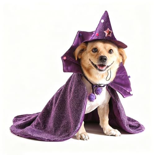 Specification: Mogoko Dog Halloween Costume Witch Wizard Cape with Hat Purple Halloween Pet Apparel Wizard Outfit for Dogs Cats Cosplay Clothes