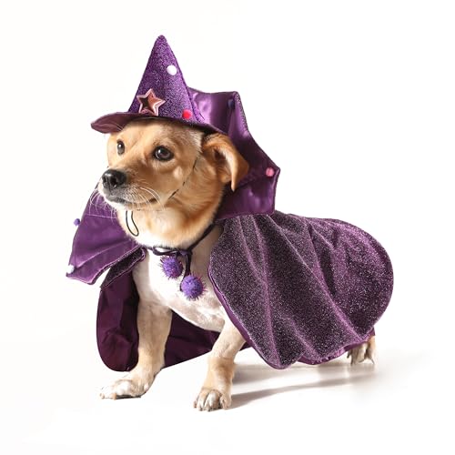 Mogoko Dog Halloween Costume Witch Wizard Cape with Hat Purple Halloween Pet Apparel Wizard Outfit for Dogs Cats Cosplay Clothes