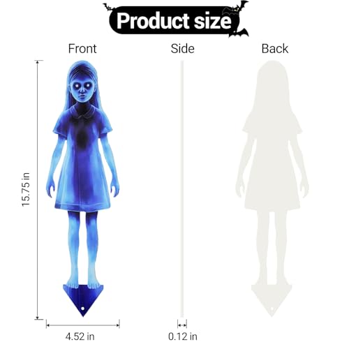 Specification: Scary Girl Ghost Courtyard Decoration for Halloween Outdoor, 2PCS Spooky Halloween Ghost Twins Yard Signs with Stakes, 16″ Waterproof Iron Creepy Twins Lawn Signs Ground Stakes for Home Outside Decor