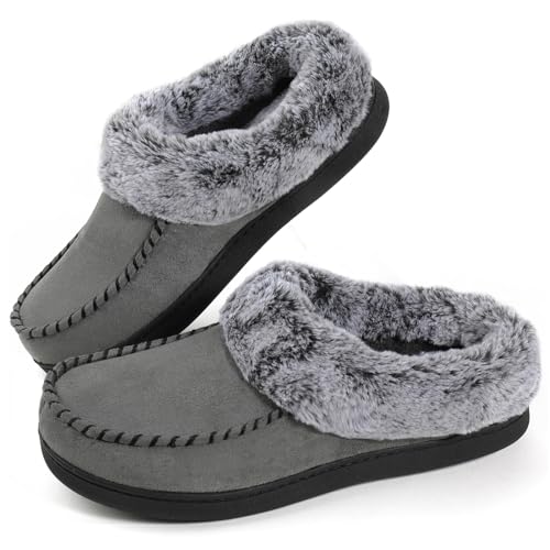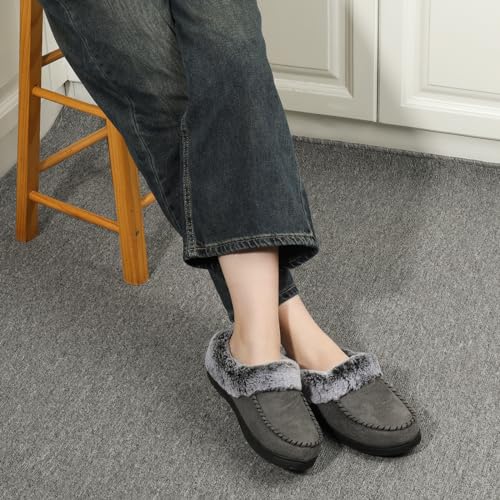 ULTRAIDEAS Women’s Memory Foam House Slippers with Hard Bottom, Fur Lined House Shoes with Non-Slip Rubber Sole for Indoor & Outdoor
